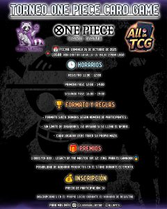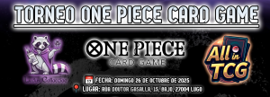 Este domingo 26 de octubre, en colaboración con All in TCG, celebraremos en nuestro local un torneo del One Piece Card Game.